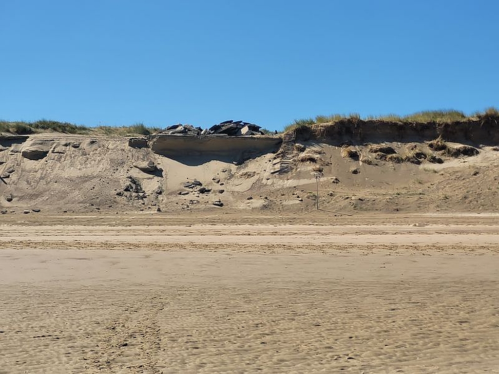 Einige Spuren der Sturmflut vom Februar 2022 sind am Strand noch in der Nähe des Kinderspielplatzes sichtbar. So wurde die Dünenkette auf einer Breite von ca. 450 Metern und Höhe von ca. 7,5 Metern beschädigt, so dass Teile des ehemaligen Radweges und ein Zaun weggebrochen sind. Ein neuer Radweg wurde bereits etwas weiter zum Landesinneren angelegt.